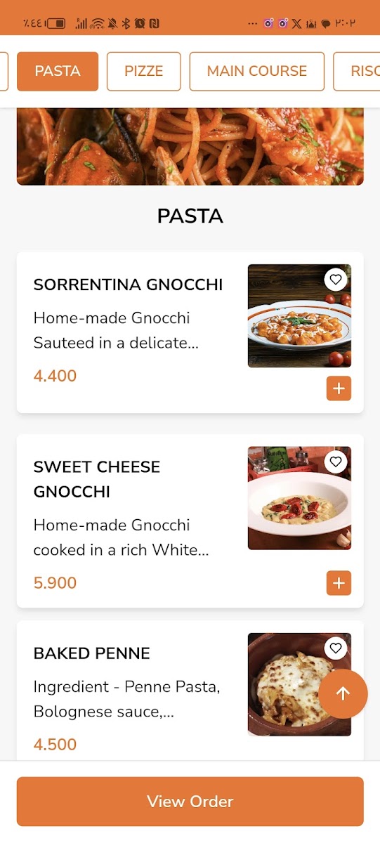 The main course menu takes you on a Mediterranean adventure with the Paella, a classic Spanish dish filled with rich flavors. The Risotto Al Frutti Di Mare and Risotto Al Funghi are both creamy and full of depth, while the earthy Risotto Al Porcini Secchi and luxurious Risotto Al Tartufo Nero are for those seeking a more refined option.