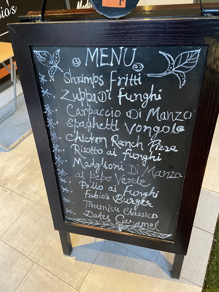 Salads at Fabio's are equally refreshing, with options like the Insalata Di Pollo Piccante Con Mango E Avocado, a zesty choice featuring spicy chicken, mango, and avocado. For a milder taste, the Insalata Di Pollo E Avocado is perfect, while the Carpaccio Di Manzo and Carpaccio Di Pesce offer a delicate, fresh flavor that highlights the restaurant's focus on quality ingredients.